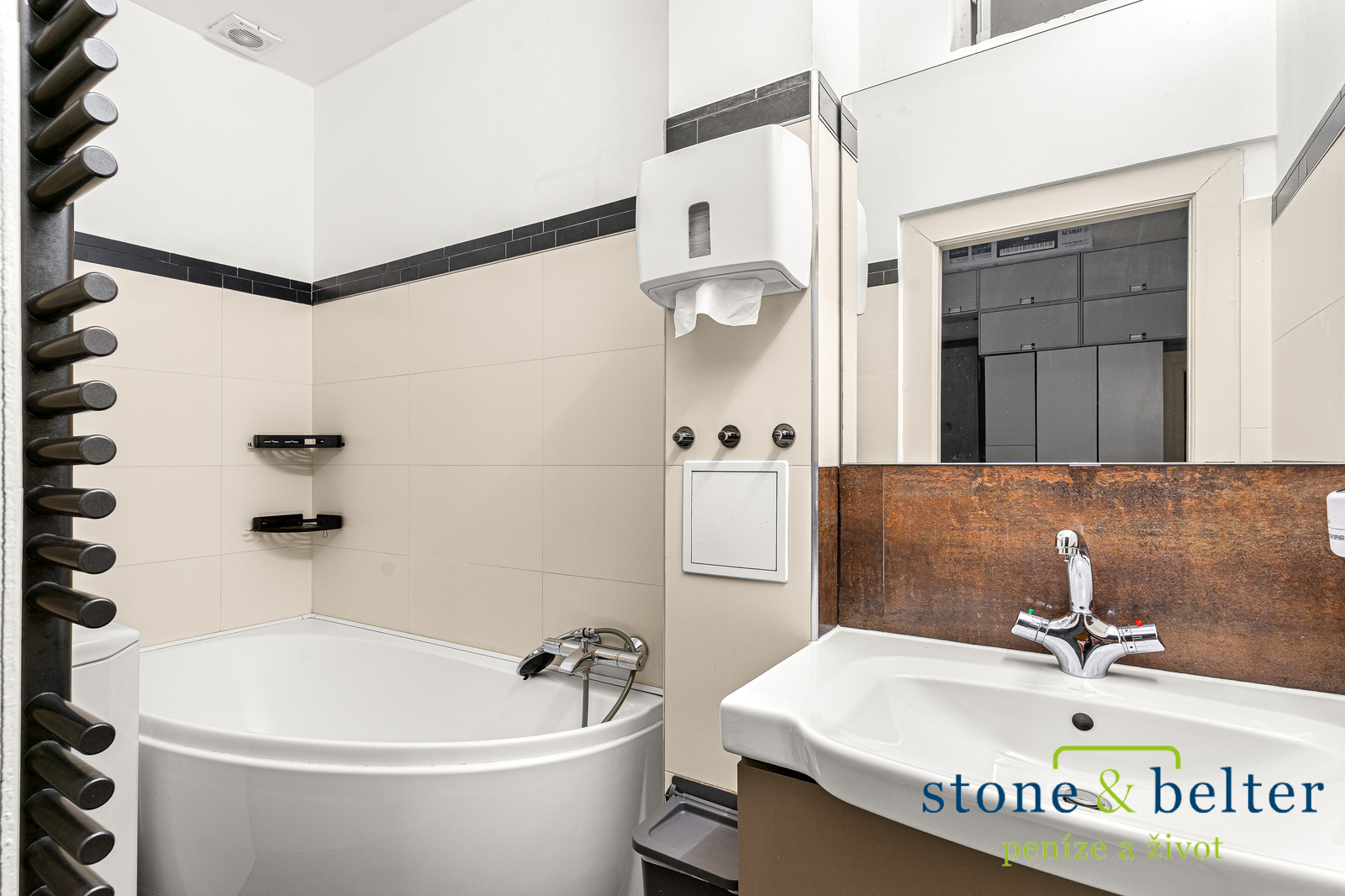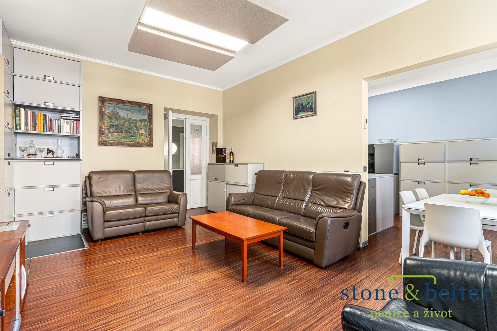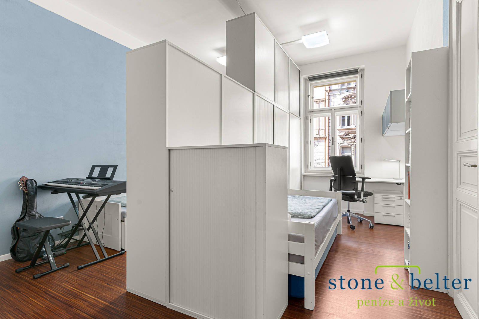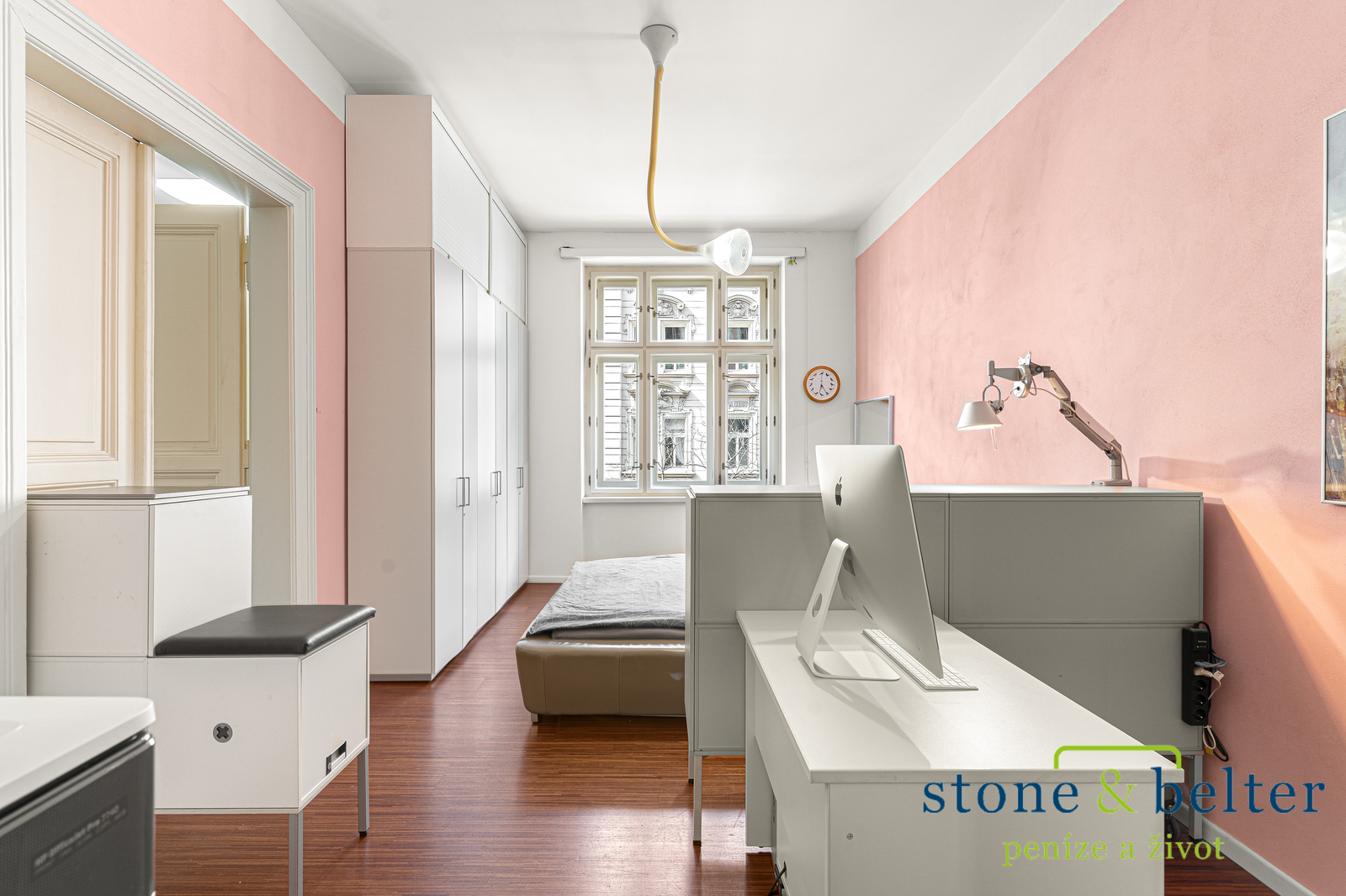 Rekonstrukce bytu citlivě pracuje s původním charakterem prostoru a současně nabízí standard odpovídající dnešnímu bydlení.