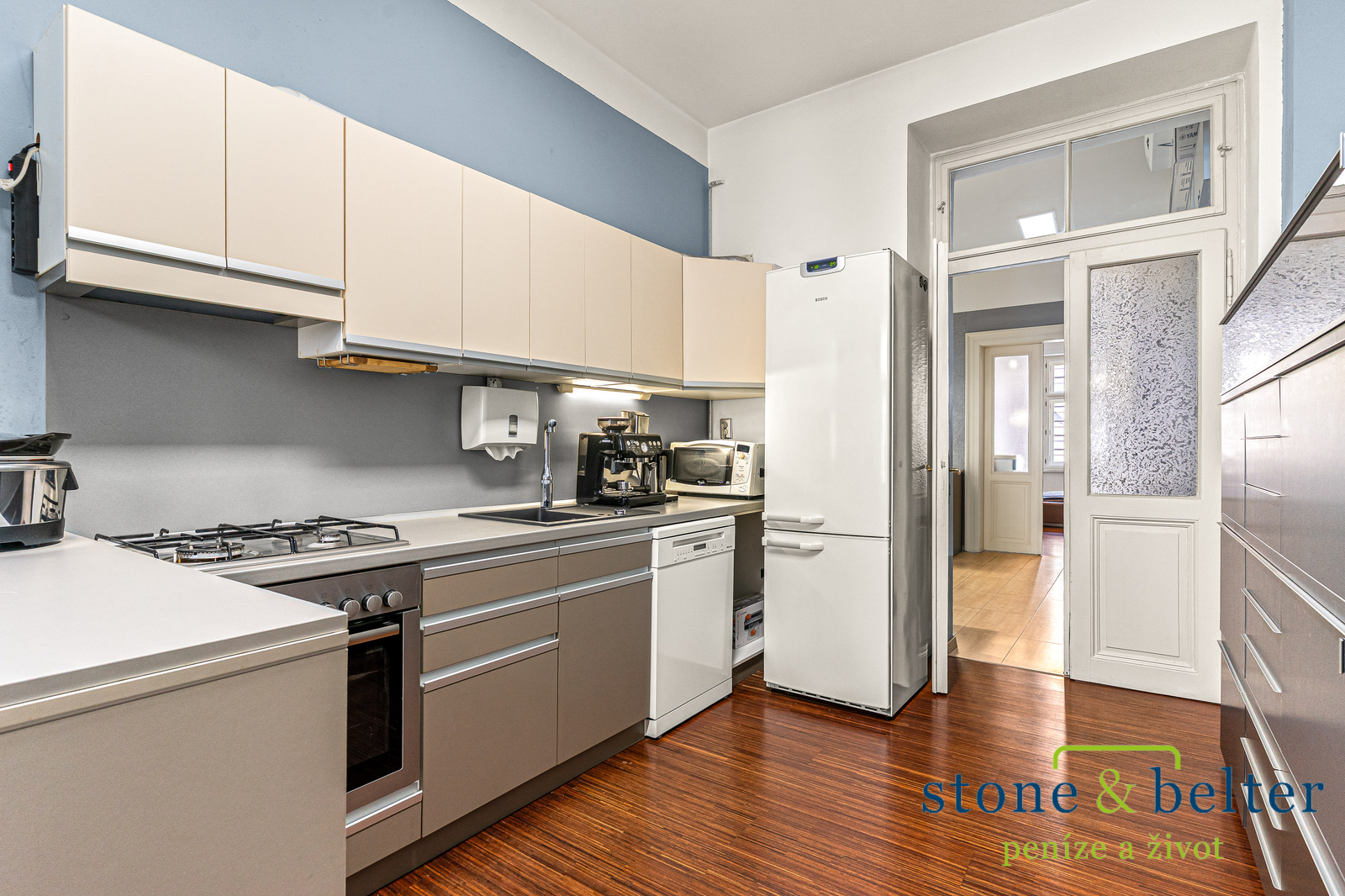 Byt prošel rozsáhlou rekonstrukcí, při které bylo zachováno maximum původních prvků podtrhujících eleganci prostoru. Jsou zde nové rozvody elektřiny, vody i plynu, podlahové vytápění, nové omítky a v předsíni zůstal přiznán původní klenutý strop. V pokojích jsou dřevěné podlahy, na chodbě plovoucí a v koupelně dlažba. Špaletová okna byla vyměněna za nová a původní dřevěné dveře prošly repasí. Ohřev vody i vytápění zajišťuje úsporný a ekologický plynový kotel.