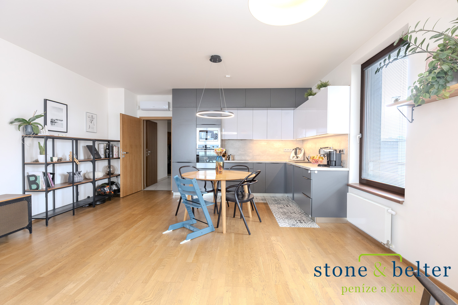 Pronájem krásného a praktického bytu 3+kk s lodžii, klimatizací ve všech místnostech a 2 parkovacími stáními.