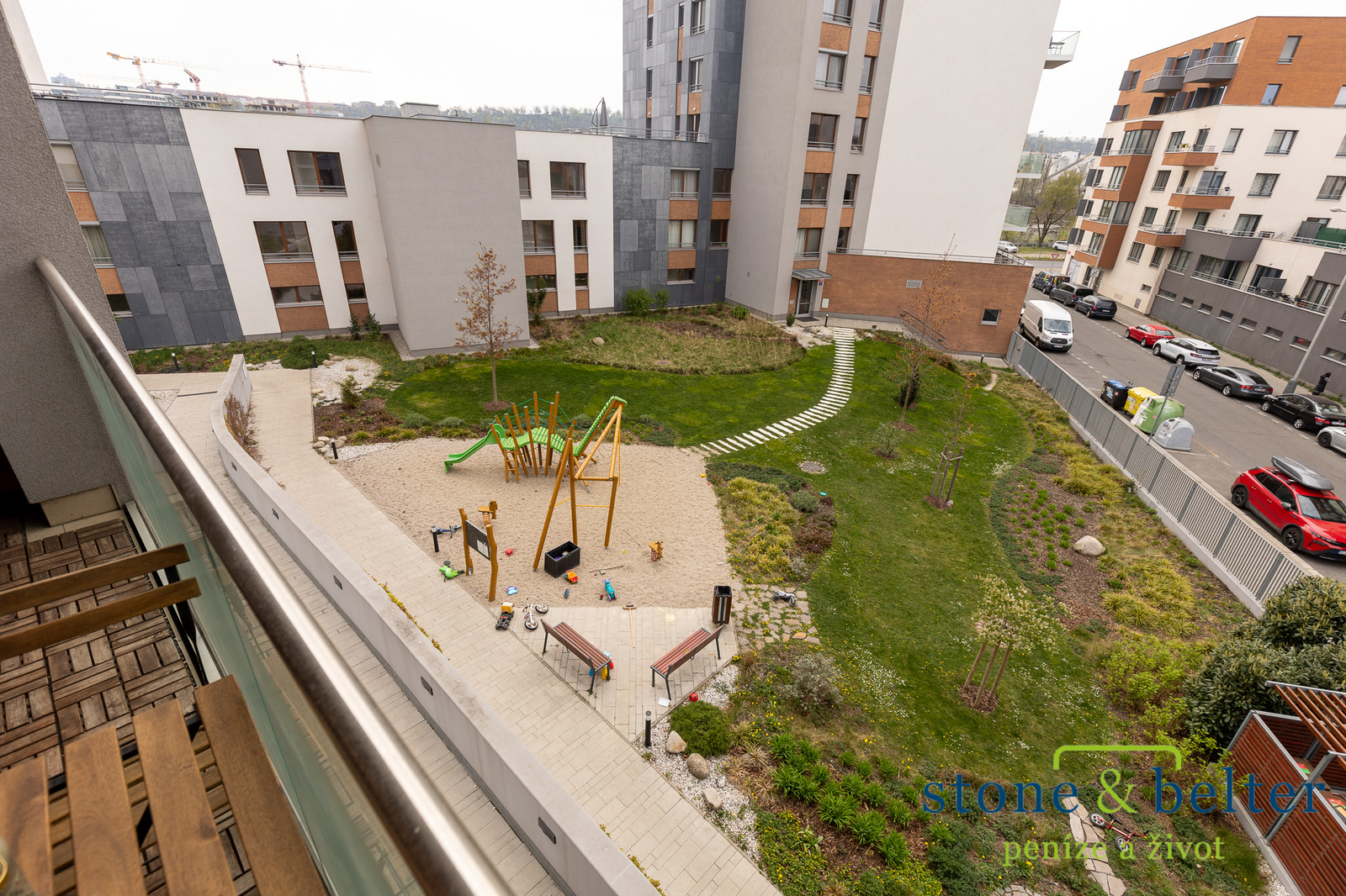 Byt se nachází ve 3. nadzemním podlaží moderního rezidenčního domu z roku 2018, který má dva výtahy a nabízí pohodlné městské bydlení. V uzavřeném areálu domu je k dispozici také dětské hřiště.