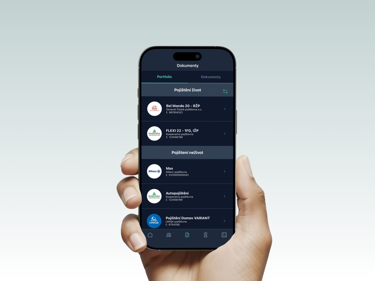 Klient má ve svém mobilu přehled o majetku, smlouvách i produktech, které si může jednoduše sjednat.